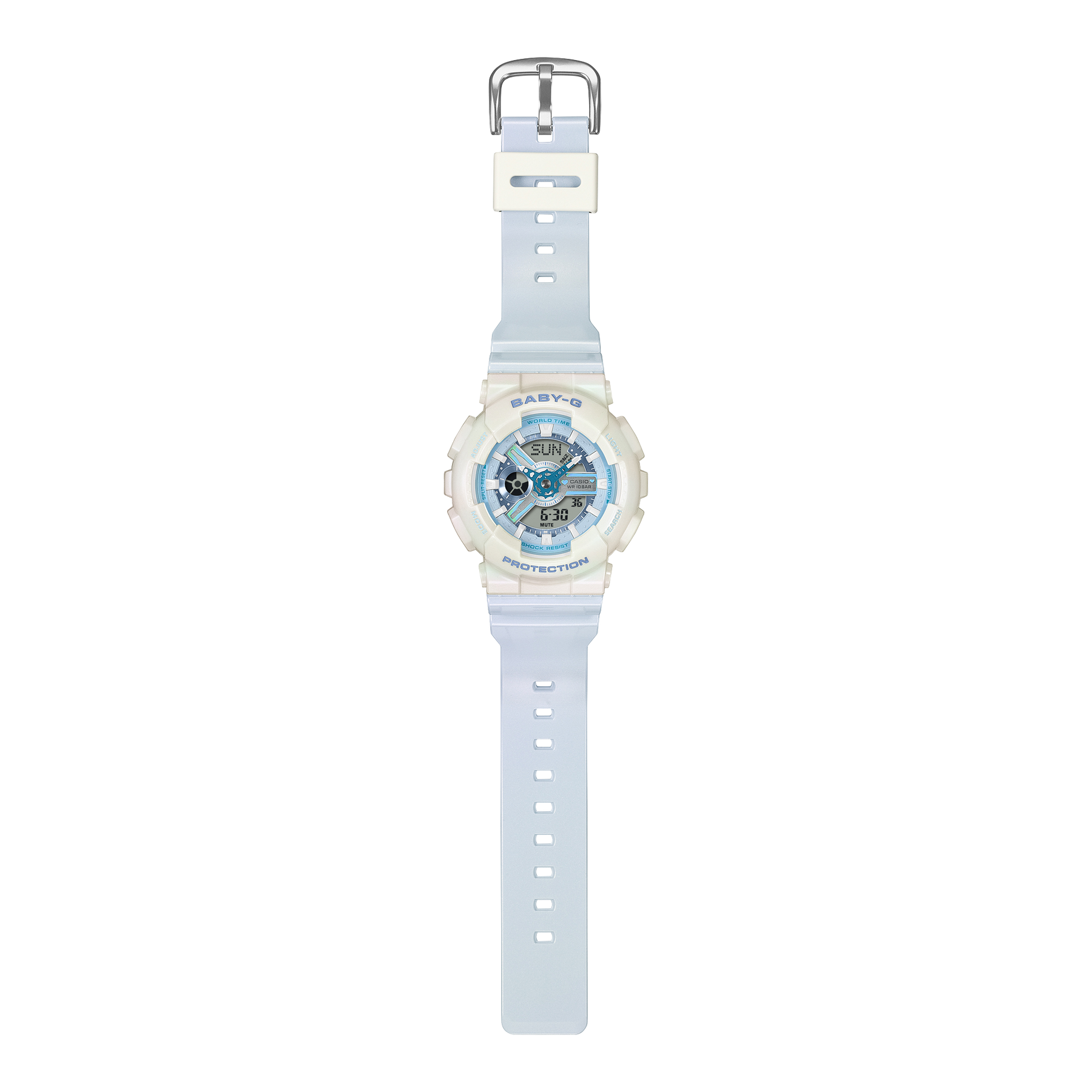 We begin with the distinctive BA-110 and dress its intricate combination of dial, indexes, and other components in color schemes of soft pastel. Accents on the watch hands add a pop of vibrant color for a playful contrast that brightens any day.