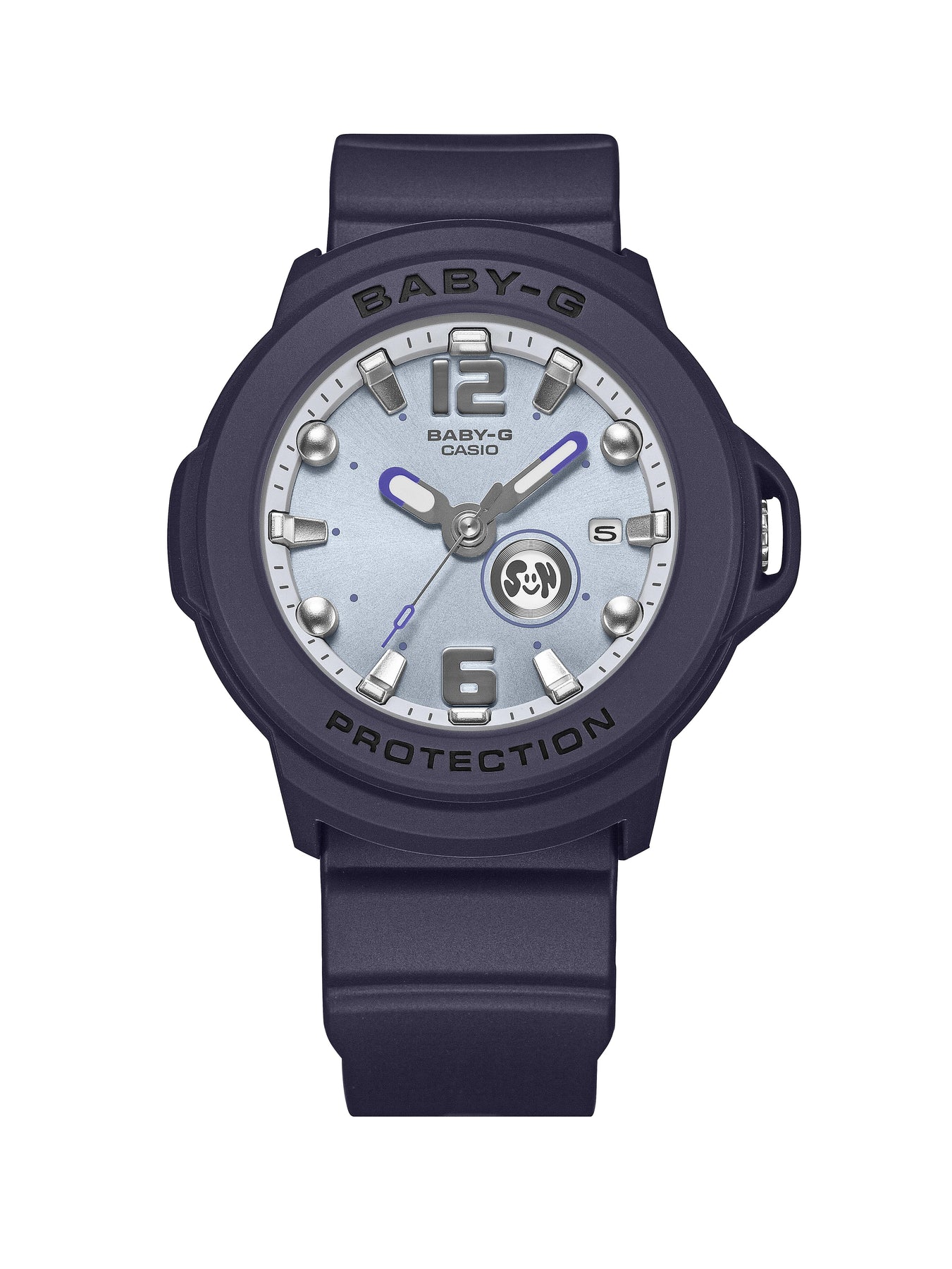 The dial features a subtle shimmering finish, with Arabic numerals at 12 and 6 o’clock to support readability. The day display changes its design daily, adding a playful visual element through varied fonts and colours. In addition to BABY-G shock-resistant construction, the watch offers 10-bar water resistance, ensuring everyday practicality.