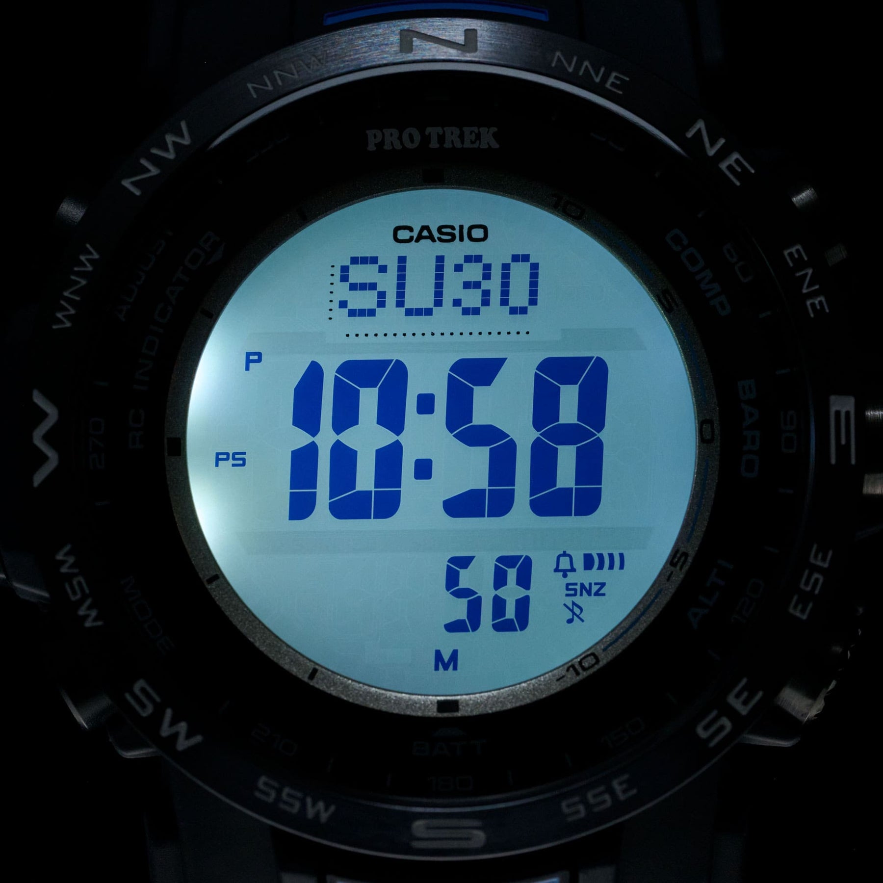 This timepiece really delivers the whole package — convenient, one-push outdoor functionality in a watch that incorporates materials expected to help reduce environmental impact. Satisfy your passion for the great outdoors and love of the environment with the digital PRW-35.