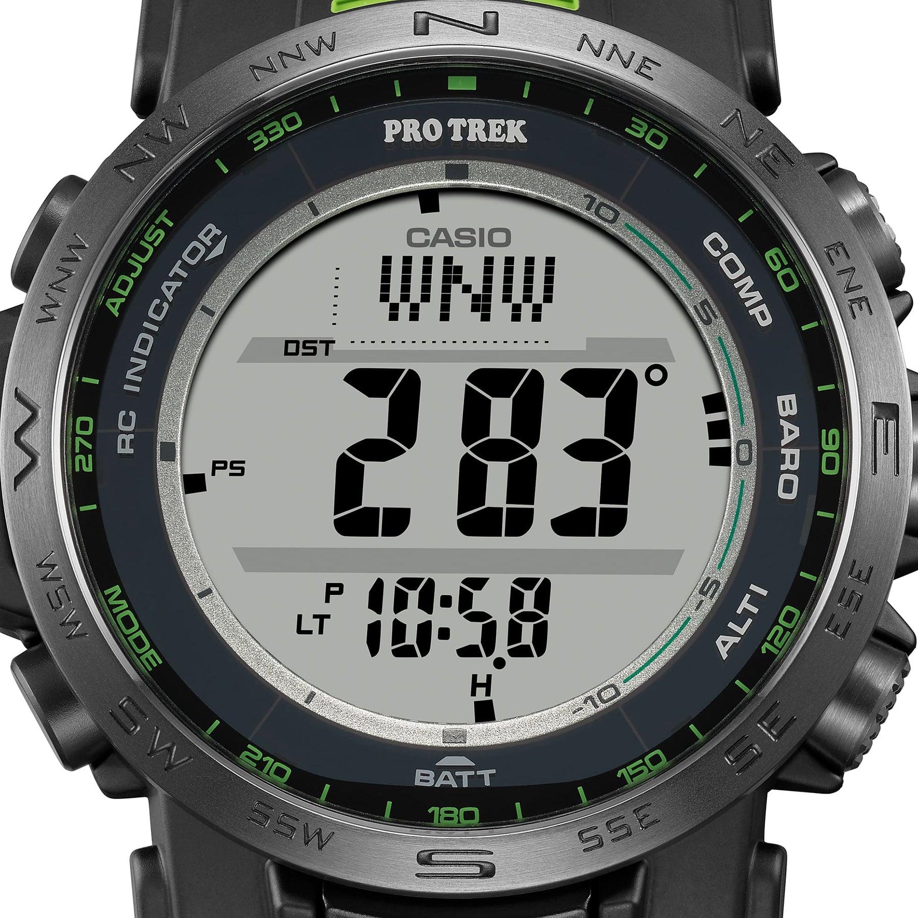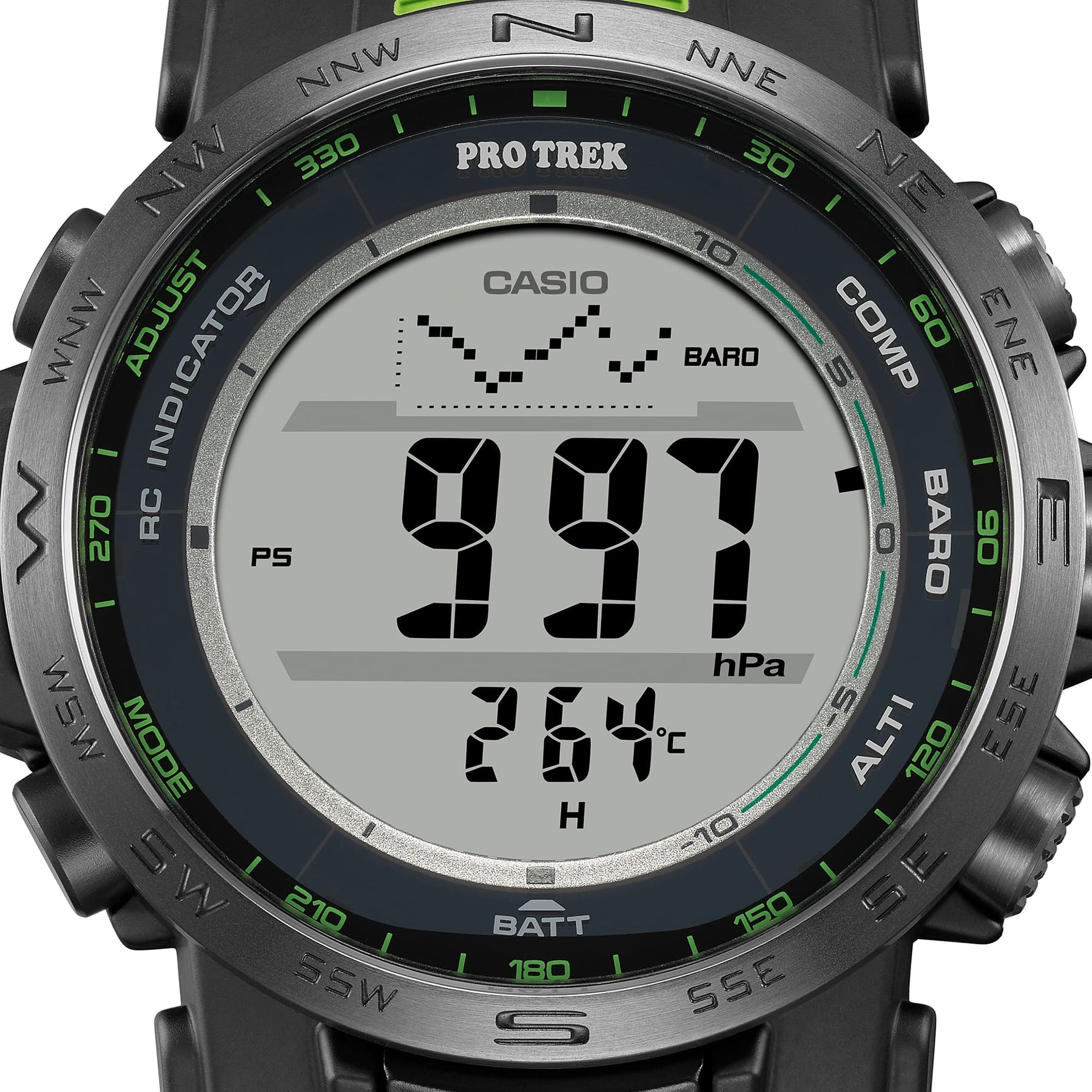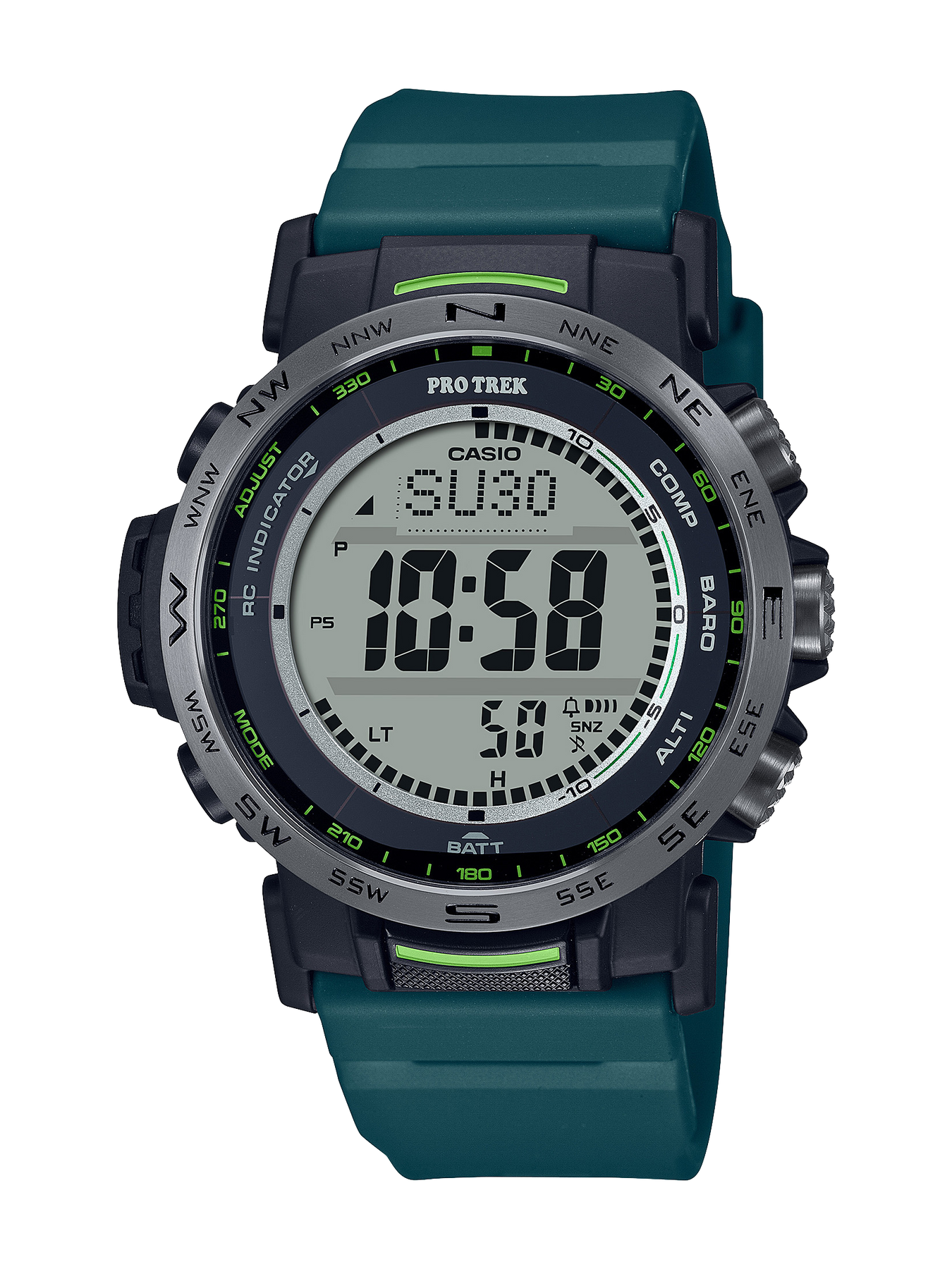 This timepiece really delivers the whole package — convenient, one-push outdoor functionality in a watch that incorporates materials expected to help reduce environmental impact. Satisfy your passion for the great outdoors and love of the environment with the digital PRW-35.