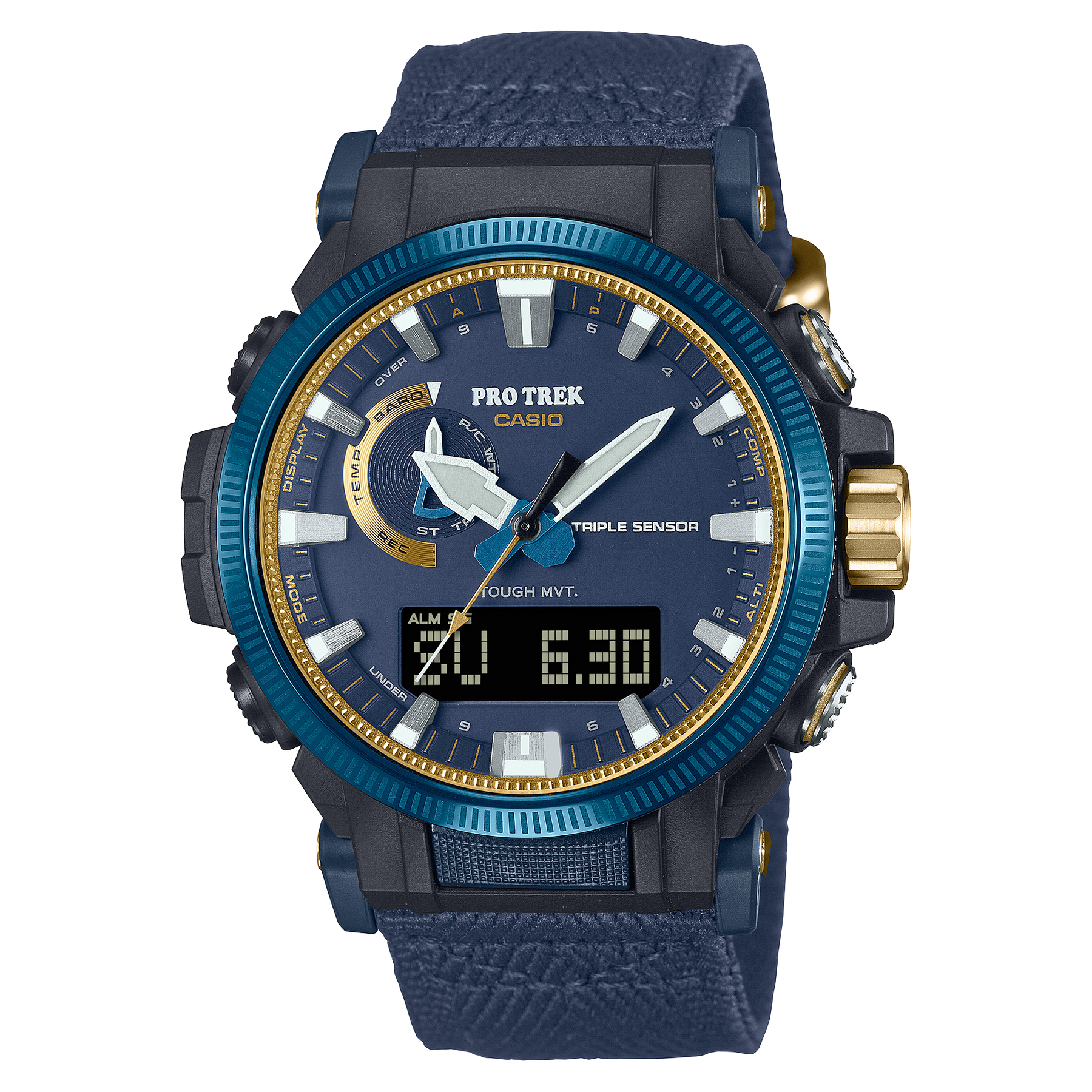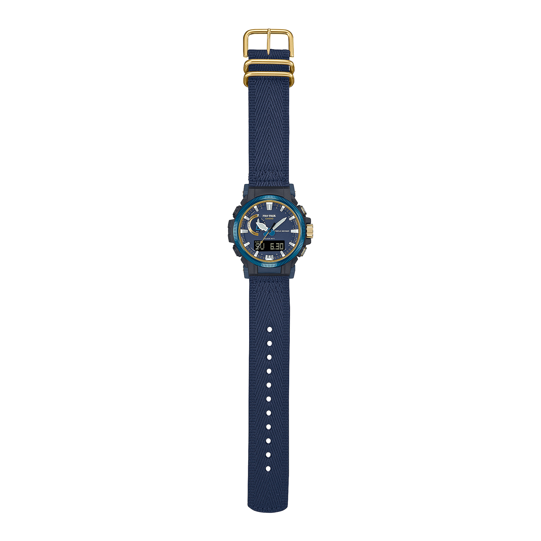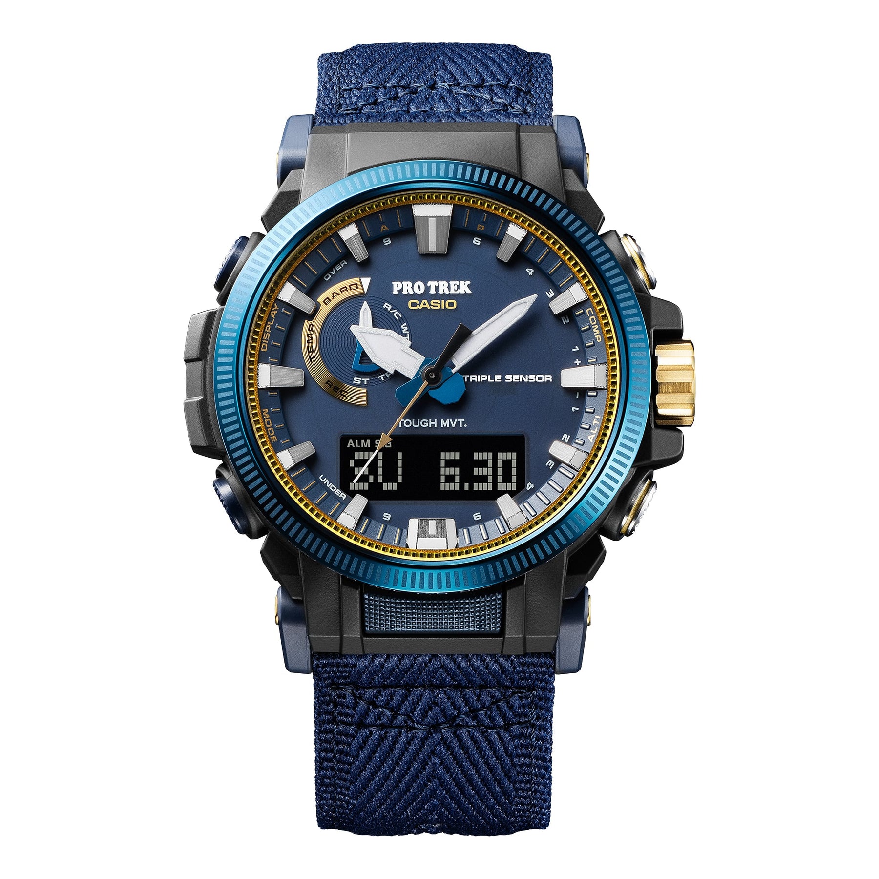 Celebrate 50 years of Casio watches with a transcendent PRO TREK that symbolizes Casio’s determination to stay true to who we are, while constantly innovating. The PRO TREK PRW-61SS features a special commemorative color scheme and design with Casio colors, materials, and finishes that evoke the omnipresent yet ever-changing nature of the sky, the sea, and the sunlight — shining today and forevermore. The design features a dial ring laser-etched with a fluted pattern. The logo is engraved on the case back, paying homage to the first-ever Casiotron released back in 1974. This very special 50th anniversary-worthy PRO TREK embodies both the origin of Casio watches and the half-century of groundbreaking innovation that followed.